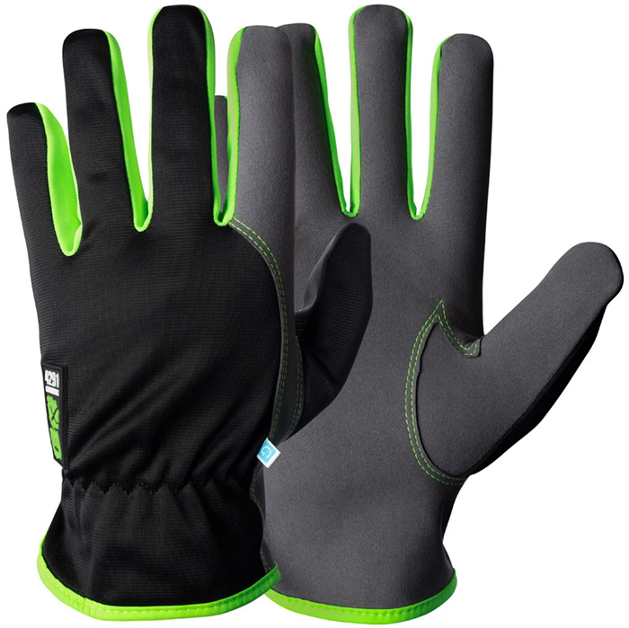Slittåliga arbetshandskar för däckmontering och liknande arbetsuppgifter. Utmärkt flexibilitet och fingerkänsla. Ofodrade. Material: amara/nylon. Standard: EN 388, 420.